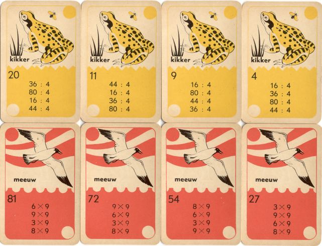 Elk spel heeft 8 kwartetten. Elke kaart heeft een afbeelding en een rekenkundige oefening. De kwartetten waren waarschijnlijk bedoeld voor kinderen tussen de 5 en 7 jaar oud en konden op scholen gebruikt worden ter ondersteuning van de rekenlessen.
