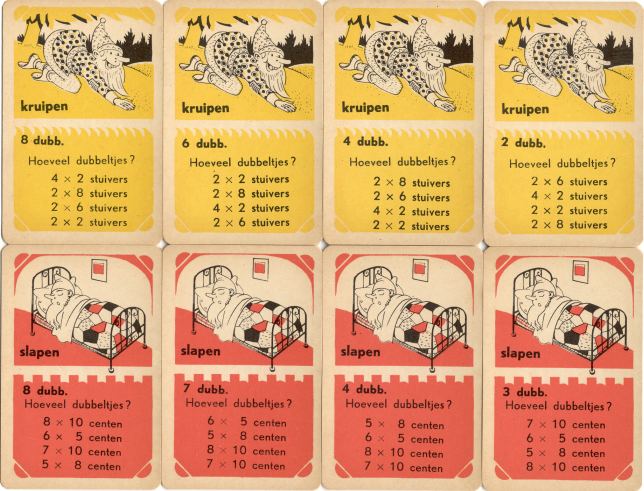 Elk spel heeft 8 kwartetten. Elke kaart heeft een afbeelding en een rekenkundige oefening. De kwartetten waren waarschijnlijk bedoeld voor kinderen tussen de 5 en 7 jaar oud en konden op scholen gebruikt worden ter ondersteuning van de rekenlessen.